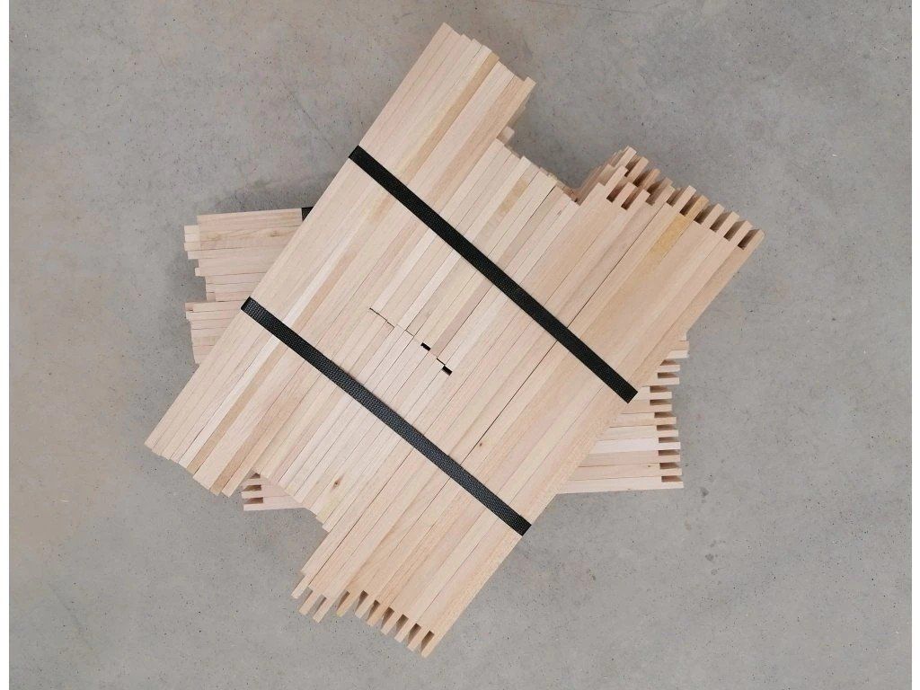 Přířezy o rozměrech 39 x 17 cm jsou nařezány a připraveny na následnou kompletaci včelích rámků.