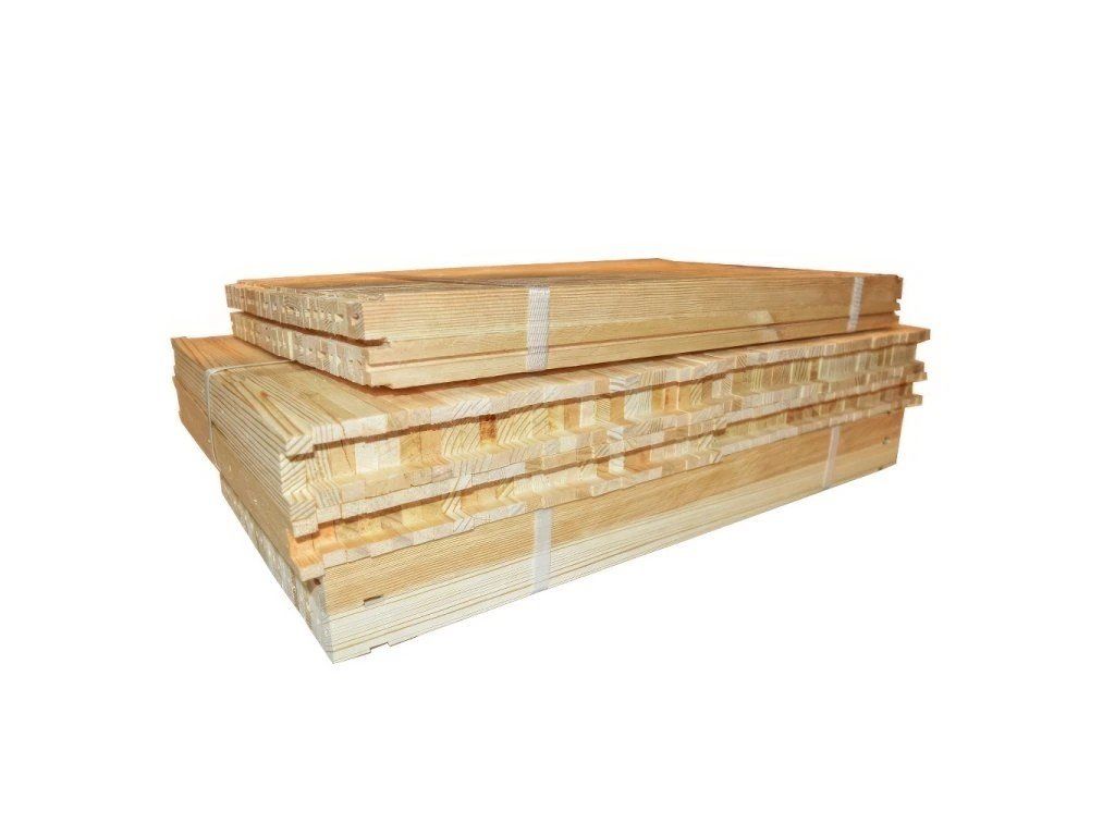 Přířezy Langstroth 2/3 Hoffman o rozměrech 45 x 15,9 cm jsou nařezány a připraveny na následnou kompletaci včelích rámků.